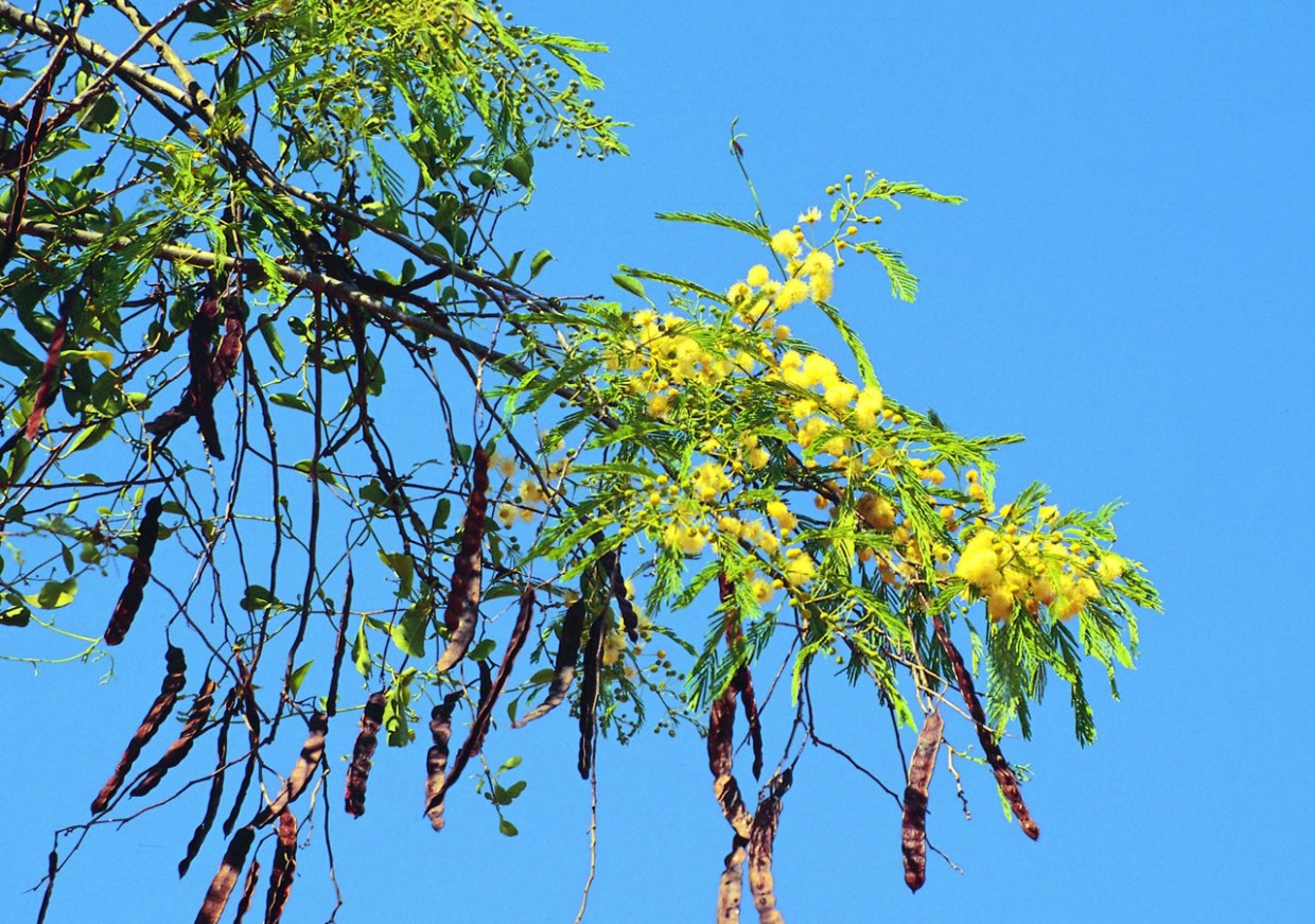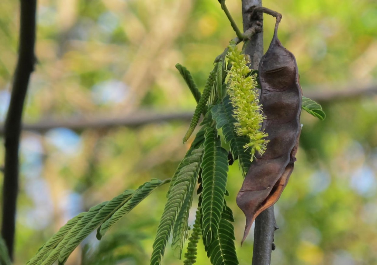 Floresce durante os meses de setembro-março. Frutificação de março à novembro. Inflorescências do tipo espiga, axilares. Flores branco-amareladas, hermafroditas de até 5mm de comprimento. Fruto do tipo vagem plana articulada, avermelhada, de até 15cm de comprimento por 2 de largura.