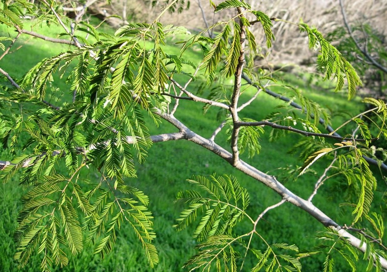 Árvore de grande porte, de até 35m de altura, caducifólia. Fustes altos e retos de até 1,2m de diâmetro. Casca marrom-escura a avermelhada, se desprende em placas a partir da base. Folhas alternas bi-pinadas, com 3 a 6 jogos de pinas.