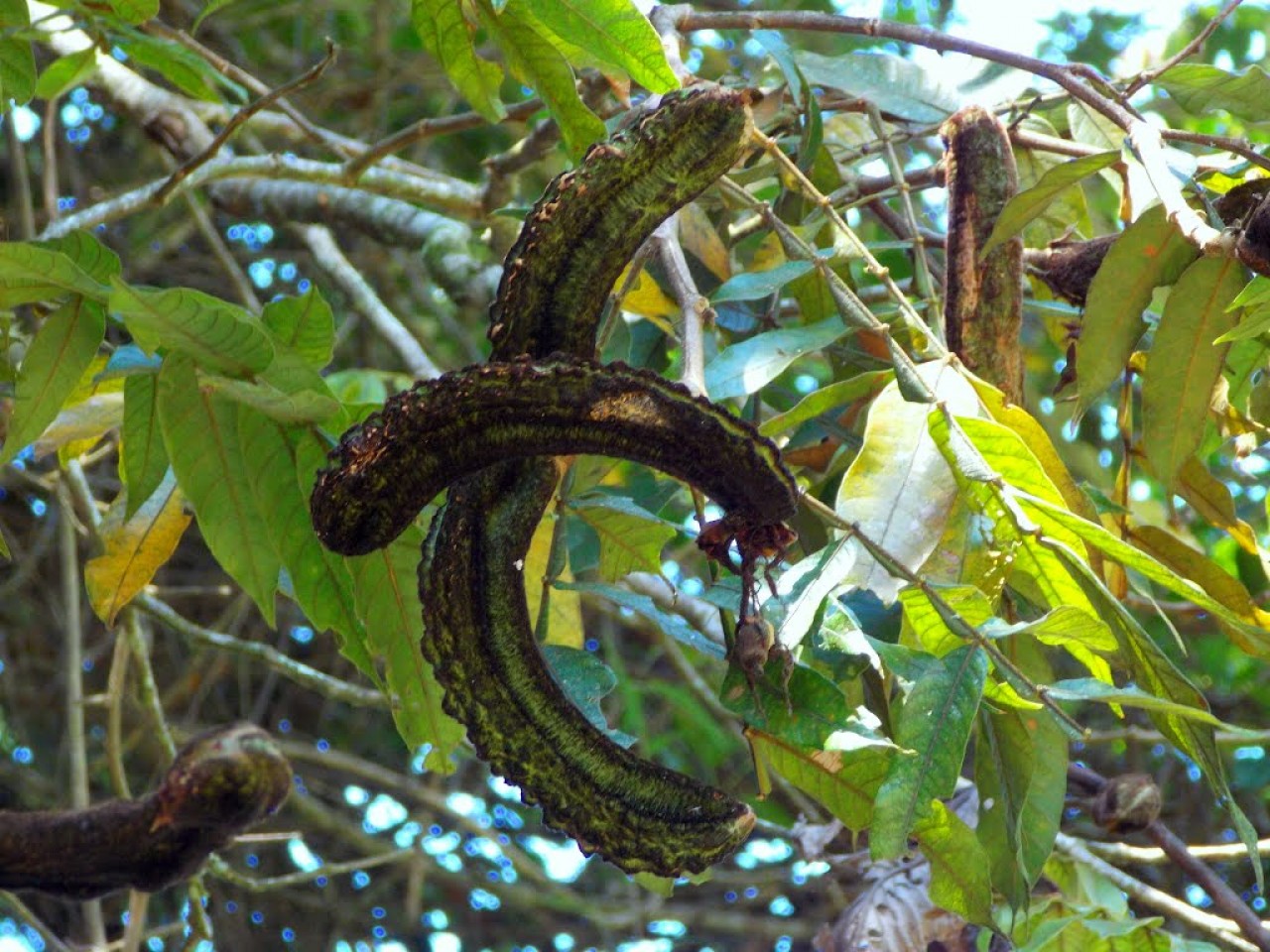 Floração durante os meses de fevereiro-setembro. Frutificação junho-janeiro. Inflorescência em cachos axilares. Flores brancas de até 2,5cm de comprimento, pentâmeras, hermafroditas com estames vistosos (em pincel). Fruto vagem lenhosa, tomentosa de cor marrom, achatada e curva de até 20cm de comprimento por 3cm de largura.